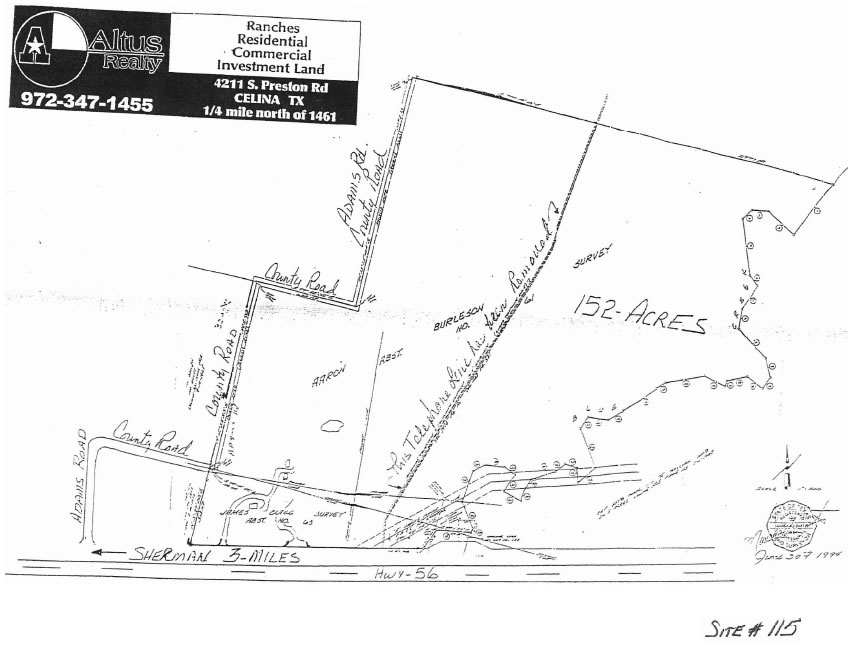 110-Acres on Hwy-56 Three Miles east of Sherman, Texas. Only three miles east of Sherman city limits. Old German homestead home with basement, older barns, two ponds, several wells and loads of trees. This beautiful site has 1470+/- feet of Hwy-56 frontage along with additional frontage on two side roads. The east line is Blue Creek that is surrounded by tall trees. In August, 2006, the owner invested over $30,000 for clearing brush and cleaning the site. A great old setting for a new owner. 110-Acres-$7900/acre